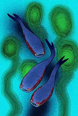 В настоящее время окаменелости тела целиком известны только для особей рода Archipelepis: эти окаменелости показывают, что последние были похожи на головастиков и не имели плавников кроме раздвоенного хвостового плавника[4].