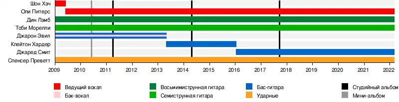 - Дин Лэмб — восьмиструнная гитара (2009-настоящее время)