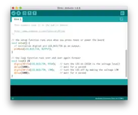Arduino IDE — интегрированная среда разработки для Windows, MacOS и Linux, разработанная на Си и C ++[2], предназначенная для создания и загрузки программ на Arduino-совместимые платы, а также на платы других производителей[3].