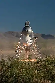 Ракета Mod парит в свободном полёте в период Lunar Lander Cup