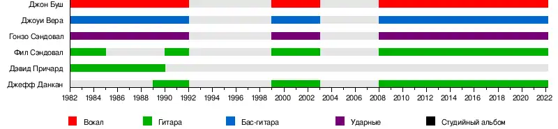 - Гонзо Сэндовал — ударные (1982—наши дни)