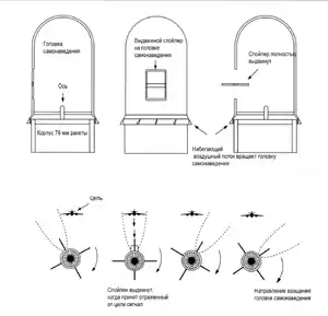 В носовой части ракеты, на вращающемся подшипнике была закреплена полуактивная радиолокационная головка самонаведения. В полете, набегающий поток воздуха раскручивал ГСН в направлении, противоположном направлению вращения корпуса ракеты. За счет вращения головки самонаведения осуществлялось коническое сканирование: антенна детектора радиоизлучения была расположена под углом в 45 градусов от оси ракеты.
