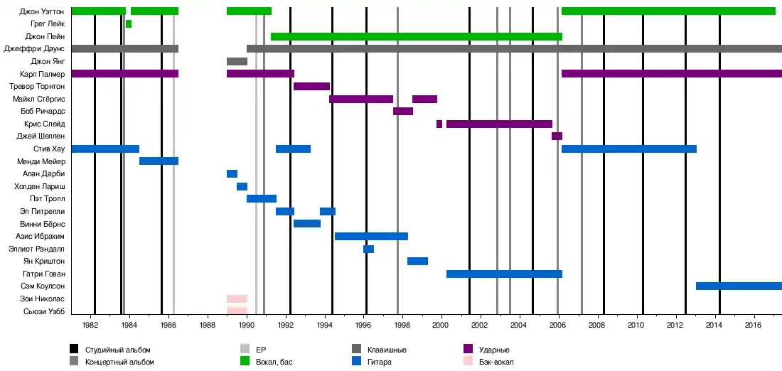 - Карл Палмер — ударные, перкуссия (1981—1986, 1989—1992, 2006—наши дни)