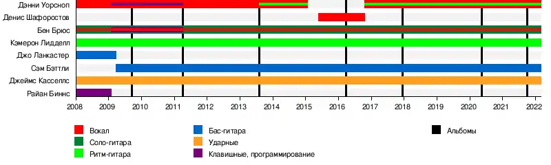 - Бен Брюс — соло-гитара, дополнительный вокал (2008—настоящее время), клавишные, программирование (2009—2011)