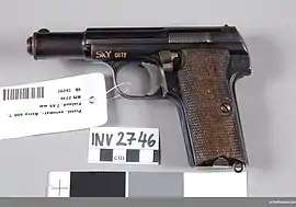 - "Первыми пистолетами, принятыми на вооружение в послевоенной Западной Германии стали испанский пистолет Astra 600/43 и швейцарский SIG P49"