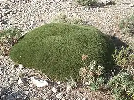 Многолетний кустарник[4], хамефит; растёт плотной группой. Стебель покрыт колючками. Листья собраны в листовки. Цветёт с марта по июль[6].