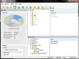 - Поддержка файловых систем для диска — ISO9660, ISO9660+Joilet, UDF, Audio CD.