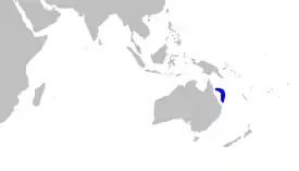 Это эндемичный вид, обитающий на континентальном шельфе у северо-восточного побережья на глубине от 225 до 402 м[1].