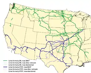 Железная дорога официально прекратила свою деятельность 31 декабря 1996 года, когда она объединилась с Burlington Northern Railroad и образовала Burlington Northern and Santa Fe Railway.