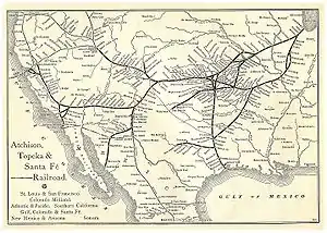 Atchison, Topeka and Santa Fe Railway достигла Альбукерке в 1880 году. Первоначальный пункт назначения железной дороги Санта-Фе, оказался на короткой ветке от Лами, штат Нью-Мексико[1]. В марте 1881 года AT&SF соединилась с дорогой Southern Pacific в Деминге, Нью-Мексико, образовав второй трансконтинентальный железнодорожный маршрут.