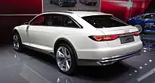 Audi Prologue Allroad был представлен на автосалоне в Шанхае 2015 года. Вседорожная версия серии "Allroad" с возможностью изменения дорожного просвета. Гибридный двигатель 4.0 л. V8 TFSI + e-tron 725 л.с. разгон от 0 до 100 км/ч. 3.5 секунды[4]. Характерными чертами внешности Audi Prologue Allroad стали матричные лазерные фары головного света, удлиненный капот, низкая покатая крыша и плоские задние стойки кузова.