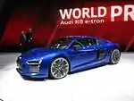 Существует и полностью электрическая версия R8 под именем e-tron. Модель имеет статус прототипа, но тем не менее собрано 12 экземпляров. Привод только задний — два электромотора на задней оси позволяются развивать 380 л. с. и 820 Нм крутящего момента, что позволяет разгоняться электрокару от 0 до 100 км/ч за 4,2 секунды. Максимальная скорость ограничена 200 км/ч электроникой. Сделано это с целью экономии электроэнергии, трата которой на более высоких скоростях чрезмерно высокая (см. энергетика). Центр тяжести у электрической R8 смещен вниз и это позволяет проходить крутые повороты гораздо увереннее, нежели бензиновые собратья. Этому также сильно способствует автоматическая электронная система регулировки крутящего момента Torque Vectoring, которая распределяет усилие на каждое колесо отдельно[12].