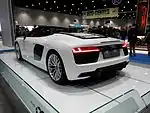 Представленный на Мотор-шоу в Нью-Йорке 2016 года, R8 Spyder является версией с откидным верхом. С момента запуска он был доступен только со стандартным двигателем V10, который производит 540 л. с. (397 кВт) в середине 2017 года была добавлена версия V10 Plus Spyder с мощностью 610 л. с. (449 кВт)[15].