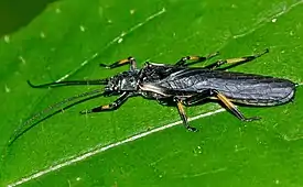 Веснянки с сильно склеротизированными покровами тела. Окраска тела тёмная с апосематическими узорами. Простые глазки имеются. Крылья затемнённые, по переднему краю белые, желтые, красные, красно-коричневые или пятнистые их размах от 20 до 50 мм. Костальное поле с многочисленными поперечными жилками. Вторая анальная жилка на задних крыльях раздвоена. На вершине голеней имеются две шпоры. Два первых членика лапок с перепончатой срединной полосой[1].