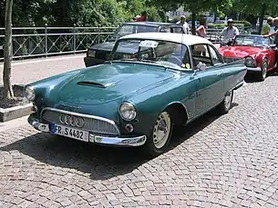 Auto Union 1000 Sp — в 1958 году фирма DKW предлагает под названием Auto Union этот спортивный автомобиль, оснащенный двухтактным двигателем с 3 цилиндрами, объемом 981 см³ и мощностью 55 л. с. Количество автомобилей, выпущенных между 1958 и 1965 годами, составляло 1640 для кабриолета и 5000 для купе. В 1959 году было выпущено ограниченное количество модели в 50 единиц с двигателем V6[1]. Его плавниковый стиль вдохновил Ford Thunderbird 1957 года, в котором он повторил задние плавники и круглые задние фонари[2].