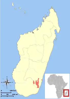 Встречается в юго-восточной части Мадагаскара в районе заповедника Манумбу. Точные границы ареала по состоянию на 2008 год неизвестны.[3][1]