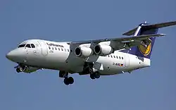 BAe 146/Avro RJ имеет схему высокоплана с Т-образным хвостовым оперением, использует четыре турбовентиляторных реактивных двигателя, расположенных на крыле. Самолёт обладает коротким взлётом и посадкой, а также низким уровнем шумов; его прозвище — Whisperjet. Самолёт был ориентирован на использование в маленьких аэропортах в городской черте, основное назначение — работа на региональных авиалиниях. BAe 146/Avro RJ широко эксплуатируется европейскими авиакомпаниями, такими как Lufthansa и Brussels Airlines. Грузовая версия самолёта имеет индекс «QT» (Quiet Trader), конвертируемая — «QC».