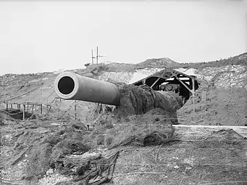 В 1940-м году британцы столкнулись с необходимостью защиты от высадки германских войск на британских островах. В немецких источниках эта операция называлась «Морской лев». Для защиты Дуврского канала в спешном порядке устанавливались дополнительные береговые батареи. Для этого были использованы и орудия строившихся «кингов». Два орудия были установлены на Дуврском барраже и получили названия «Пух» и «Винни»[15].