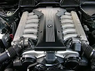 Большой V-образный двенадцатицилиндровый двигатель серии M73 устанавливался на модели 750i (750iL) и L7. Мотор был дальнейшим развитием первого послевоенного двигателя фирмы такой конфигурации, которому просто увеличили до 5,4 литров рабочий объём, что довело его мощность до 326 л. с. Двигатель имел, изготовленный из алюминиевого сплава, блок цилиндров с развалом 60°, алюминиевые головки, в которых располагалось по одному распредвалу, по два клапана на цилиндр (SOHC)[25]