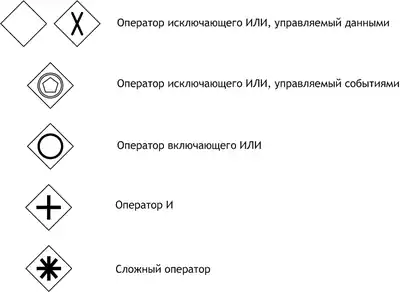- изображаются ромбами и представляют точки принятия решений в процессе. С помощью логических операторов организуется ветвление и синхронизация потоков управления в модели процесса.