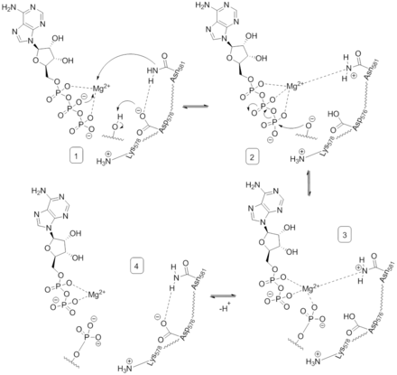 Этап 2. Нуклеофильная атака активированной гидроксильной группы субстрата на γ-фосфатную группу АТФ.