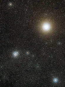 ![]() Звездное скопление NGC 4755. BU Южного Креста является яркой голубой звездой выше и правее центра изображения. | |