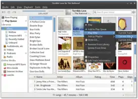 - Подкасты: позволяет Banshee подписываться на потоки подкастов, которые могут обновляться периодически. Существует также функция «Поиск новых подкастов», которая использует Podcast Alley.