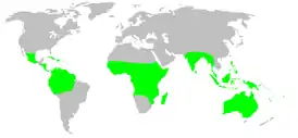 Повсеместно в тропиках: Неотропика, Афротропика, Индомалайская зона и Австралия, Новая Каледония, Новая Гвинея, Мадагаскар, Океания[2][3].