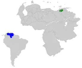 Обитают в горных лесах на северо-востоке Венесуэлы. Миграций не совершают.