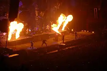 Впервые песня была представлена 23 июня 2005 года, за несколько месяцев до официального релиза. Во время исполнения в Reise, Reise туре из сцены вырывались столбы огня (только в Wuhlheide). В английском подтуре (14-18.07.2005) и на концерте в Ниме исполнялась без спецэффектов. В Liebe ist für alle da туре во время исполнения вывозили цистерну с бензином. Тилль, держа в одной руке огнемёт, а в другой распылитель (микрофон был прикреплён к груди), поливал воздух пламенем, а затем выбежавшего на сцену каскадёра. Не исполнялось в первой части Made in Germany тура, вернулась в 2013 году во время второй части тура.