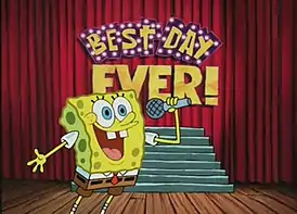 Бедный Губка Боб рассердился и прокричал в микрофон всей публике, что «самый лучший день» испорчен. Но друзья ему напоминают, как он им помог в личных делах. Губка Боб успокаивается и решает устроить спектакль, на котором все его планы сбываются. Через несколько часов Боб никак не может угомониться и поёт без остановки (по словам мистера Крабса, «пусть поёт, сколько его сердцу захочется») — друзья очень устали, а публика ушла.