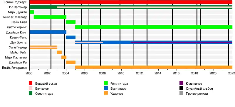 - Джейсон Кинг — бас-гитара (2000—2004)