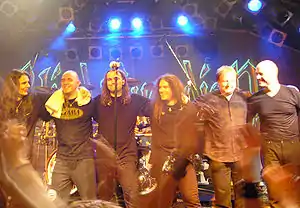 ![]() Blind Guardian в Мальмё, Швеция, 2006 г. Слева направо: Ольбрих, Эмке, Кюрш, Зипен, Шурен, Хольцварт | |