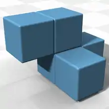 - L-тетракуб: ряд из трёх блоков с одним добавленным ниже слева;
