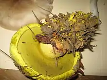 - Споровый порошок оливково-коричневого цвета. Споры 5,5—6,5×3,5—4 мкм, гладкие, эллипсоидной формы.
