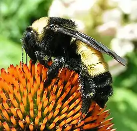 Bombus pensylvanicus (лат.) — редкий вид шмелей из семейства настоящих пчёл, относящийся к подроду Thoracobombus[1][6]. Гнездится на лугах, открытых сельскохозяйственных угодьях и полях. Питается нектаром нескольких кормовых растений, предпочитая подсолнечник и клевер[7]. В последние годы ареал когда-то самого распространённого североамериканского шмеля значительно сократился[8]. Включён в Красный список Международного союза охраны природы (МСОП) в статусе уязвимого вида.
