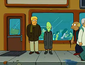 - Среди присяжных заседателей — несколько персонажей из предыдущих эпизодов: Глёрмо из Fry and the Slurm Factory, робот-старейшина из Fear of a Bot Planet, советник Фрая Горгак из My Three Suns.