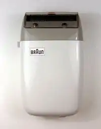 - 50-е годы также были отмечены началом производства продукции, принесшей компании мировую славу, а именно электрических бритв. Первой бритвой от Braun была S 50. Дизайн бритвы был разработан в 1938 году, но Вторая мировая война задержала её выпуск до 1951 года.[2] Эта модель включала в себя вибрирующий бритвенный блок с тонкой, но прочной сеточной системой. Этот принцип используется в бритвах Braun по сей день.