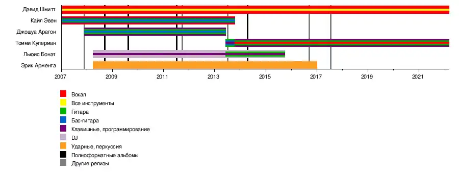 - Дэвид Шмитт — вокал, ударные, гитары, клавишные, музыкальное программирование, синтезаторы, фортепиано, перкуссия (2007-настоящее время)