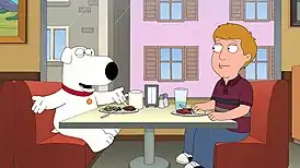 Брайан сидит один в парке. К нему подсаживается Дилан, который ещё раз выслушивает извинения своего отца. Дилан прощает Брайана, они обнимаются вместе в знак примирения, пока на заднем плане Лоис везёт Питера на коляске с травмой головы, но Гриффин рад, что теперь у него снова есть друзья.