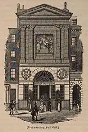 Здание Британского института было приобретено 1788 году гравером и издателем John Boydell и использовалось как Шекспировская галерея (Boydell Shakespeare Gallery) в целях содействия школе британской исторической живописи. Его архитектором был George Dance. Представляло собой монументальное неоклассическое каменное строение с тремя выставочными залами на первом этаже с общей площадью около 370 м². Скульптурная группа на фасаде была выполнена скульптором Томасом Бэнксом.