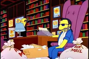 Мистер Бернс, как и остальные люди, принимает такой свой образ, а заодно украдкой благодарит Мардж, что не посмеялась над его гениталиями, на что Мардж, когда он отходит, отвечает: «Я думала, что сделала это».
