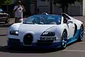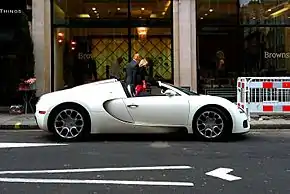 Bugatti Veyron Grand Sport — открытая версия (родстер) гиперкара Bugatti Veyron, премьера автомобиля состоялась в августе 2008 года на автомобильной выставке Pebble Beach Concours d'Elegance в США[33]. Название «Grand Sport» отсылает к моделям Bugatti Type 40 и Bugatti Type 43. Автомобиль оснащён съёмной жёсткой центральной частью крыши, выполненной из тонированного полупрозрачного поликарбоната, а также имеет мягкий тканевый «тент», который во время дождя можно установить вместо крыши. Всего выпущено 150 экземпляров автомобиля, серийное производство началось в 2009 году, цены начинались от 1,4 миллиона евро[34]. Первый образец версии Grand Sport был пожертвован на благотворительные[33] цели и был продан на аукционе Gooding & Company за 2,9 миллионов долларов. Эта машина была создана по индивидуальному заказу и получила именную табличку с номером «1».