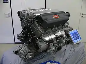 Автомобиль в кузове купе массой 1888 кг. Длина — 4462 мм, ширина — 1998 мм, высота — 1204 мм, колёсная база — 2710 мм. В автомобиле установлен восьмилитровый двигатель (7993 см³) W16 с четырьмя турбинами мощностью 1001 л. с. при 6000 об/мин и максимальным крутящим моментом 1250 Н·м при 2200—5500 об/мин. Фактически же мощность двигателя составляет от 1020 до 1040 л. с.[13] Для охлаждения двигателя применяются десять радиаторов.