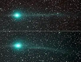 ![]() Комета Лулинь до и после «отрыва» ионного хвоста | |