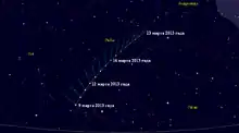 C/2011 L4 (PANSTARRS) — непериодическая околосолнечная комета. В марте 2013 года её можно было наблюдать невооружённым глазом, при этом она находилась вблизи перигелия. Наблюдениям кометы с территории Центральной России помешал циклон, пришедший как раз с 13 марта по 22 марта. До конца апреля комету можно было наблюдать с помощью мощного бинокля[1].
