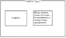 Этот формат подписи отличается от CAdES-X Type 1 только тем, что штамп времени ставится не на всю подпись CAdES-C, а только на полные ссылки на сертификаты и списки отзыва сертификатов.
