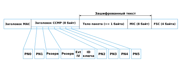 Структура пакета протокола IEEE 802.11, использующего шифрование на основе CCMP