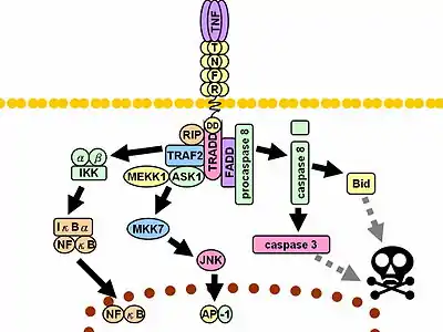 - Hehlgans T., Pfeffer K. The intriguing biology of the tumour necrosis factor/tumour necrosis factor receptor superfamily: players, rules and the games (англ.) // Immunology : journal. — 2005. — Vol. 115, no. 1. — P. 1—20. — doi:10.1111/j.1365-2567.2005.02143.x. — PMID 15819693.