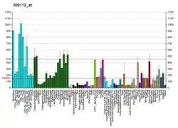 CDKN1B, был обнаружен во всех тканях, которые были протестированы. Количество мРНК CDKN1B постоянно на всех стадиях клеточного цикла, и регуляция количества белка и его активности происходит на уровне трансляции, контроля стабильности и посттрансляционных модификаций[2].